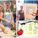 (A) Team Apple Queens receives the People’s Choice Award at the 2014 Xcience of Pie event. (B) Lipkins-Scott carries the team’s cinnamon crumb pie to the oven. (C) Fuji and Granny Smith apples were used for the Apple Queens’s pie because the team found that these apple varieties had the highest values for elastic modulus. Photos courtesy of Patrick Tran.