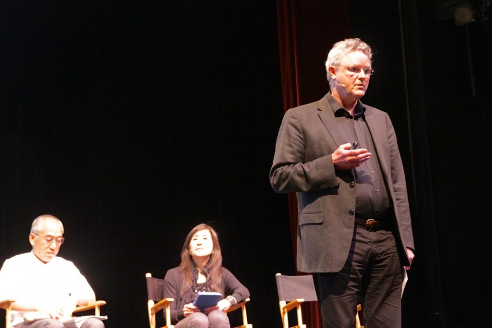 Onodera, translator, and Mouritsen at Science of Sushi. Photo Credit: Matthew Kang/Eater