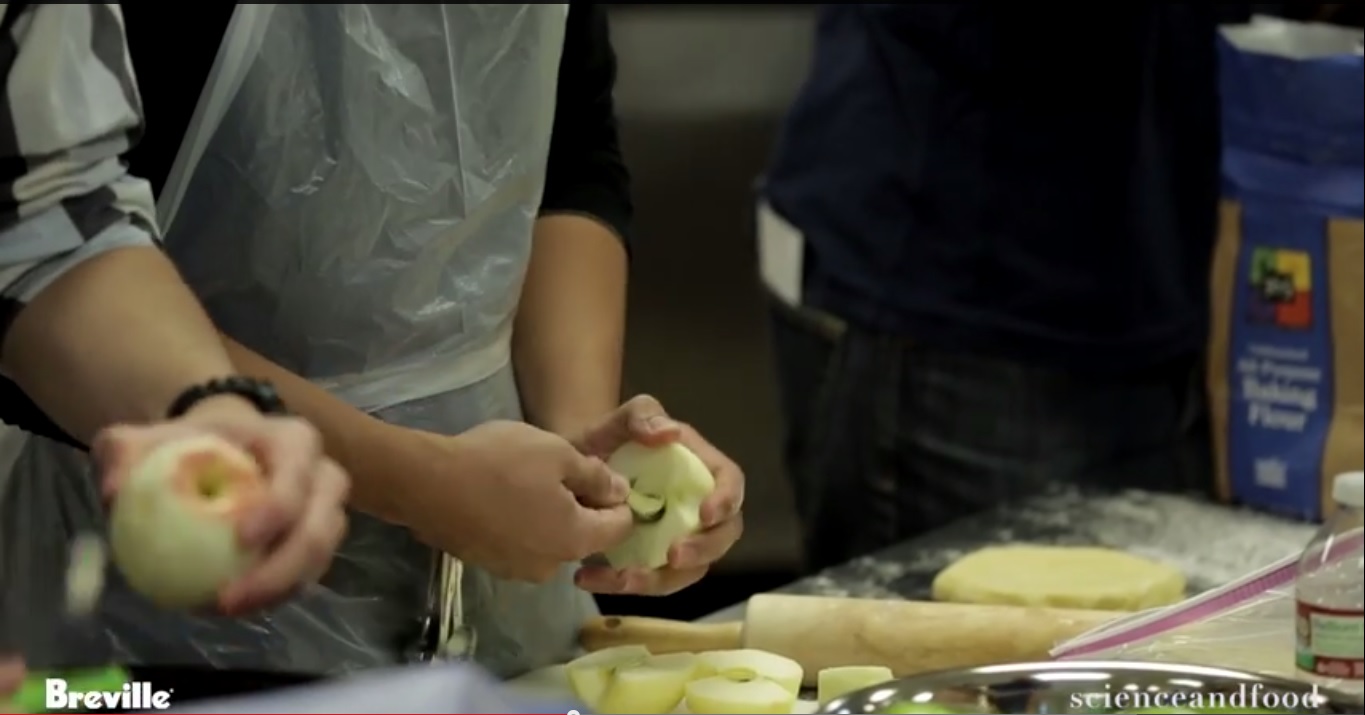 The student scientists of Team On the Road sought to solve this pie-baking mishap by determining the optimal apple slice thickness; the idea was that apple slices of varying thickness would release different amounts of water when baked, with more water released giving rise to a soggy crust. To investigate the effect of apple slice thickness, they cooked apples of different slice geometries, and measured the “elastic modulus”, which is how much the apple pieces deform in response to a given applied mass.